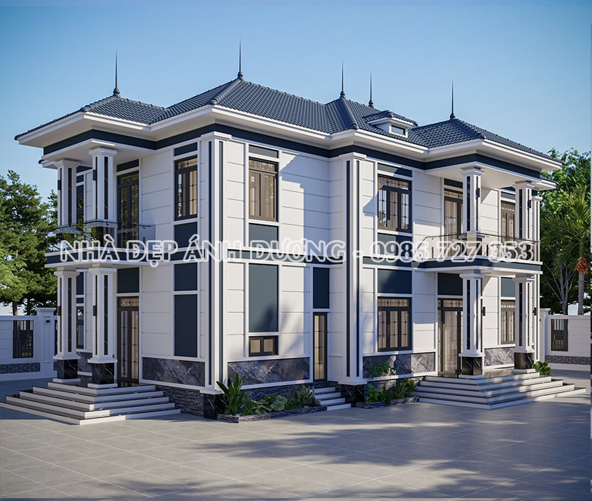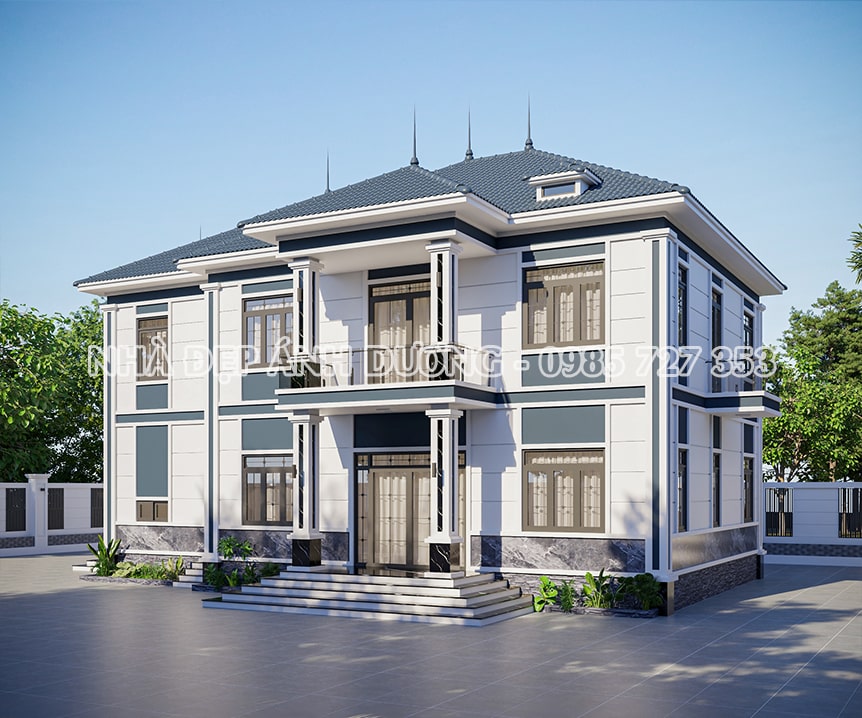 Phối cảnh ngoại thất biệt thự mái Nhật 2 tầng