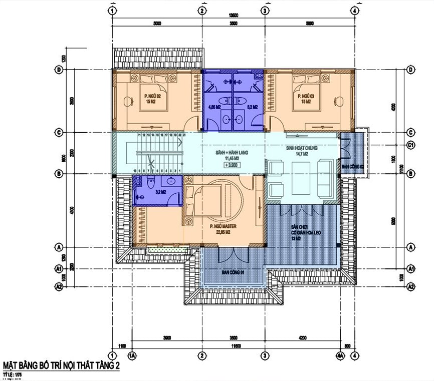 Mặt bằng công năng nhà ống 3 tầng hiện đại