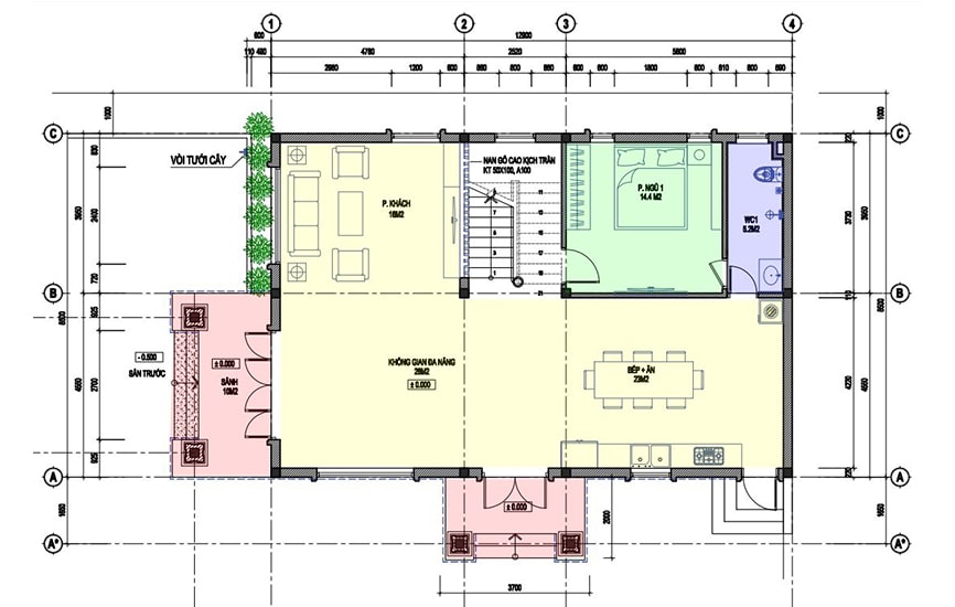 Mặt bằng công năng nhà ống 3 tầng hiện đại