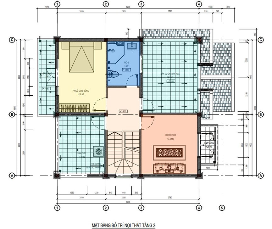 Mặt bằng công năng nhà ống 3 tầng hiện đại