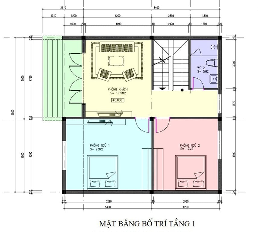 Mặt bằng công năng nhà ống 3 tầng hiện đại
