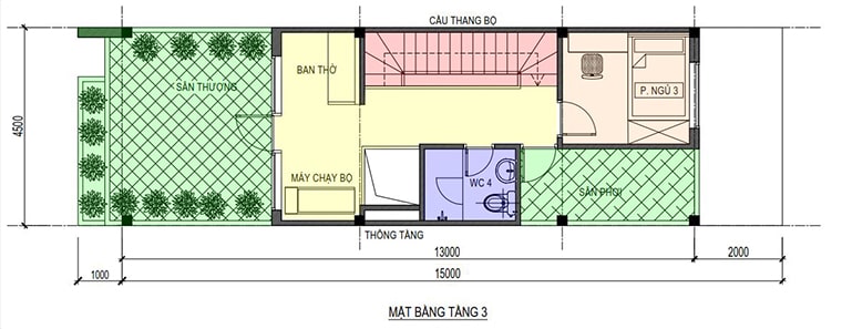 Tầng 3 có phòng thờ trang nghiêm, phòng ngủ phụ và một khoảng sân thượng rộng để gia chủ thoải mái trồng cây xanh, làm nơi thư giãn, tập thể dục hay tổ chức bữa tiệc gia đình.