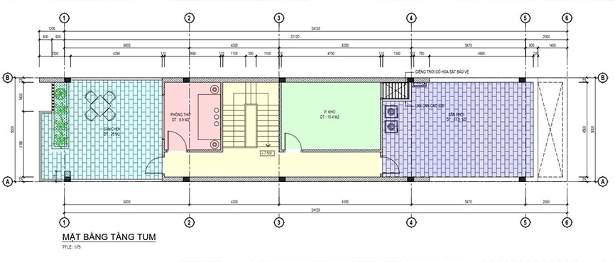 Với diện tích chiều ngang 6m và chiều sâu 17m, Kisato đã tận dụng không gian một cách hiệu quả để tạo ra một mặt bằng công năng hoàn hảo cho ngôi nhà ống ba tầng hiện đại này. Tại tầng 1, bạn sẽ tìm thấy một sân trước rộng rãi, mang lại không gian ngoài trời thư giãn và giao lưu. Gara để xe được thiết kế tiện lợi, giúp bảo vệ phương tiện của gia đình anh Đinh Duy Khánh. Cùng với đó, có một phòng ngủ tiện nghi và một vệ sinh chung thuận tiện cho việc sử dụng chung. Điểm nhấn tại tầng này là sân ướt, tạo điểm xanh và gió mát cho không gian.