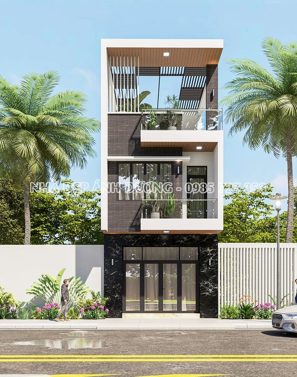 Phối cảnh 3D nhà ống 3 tầng hiện đại