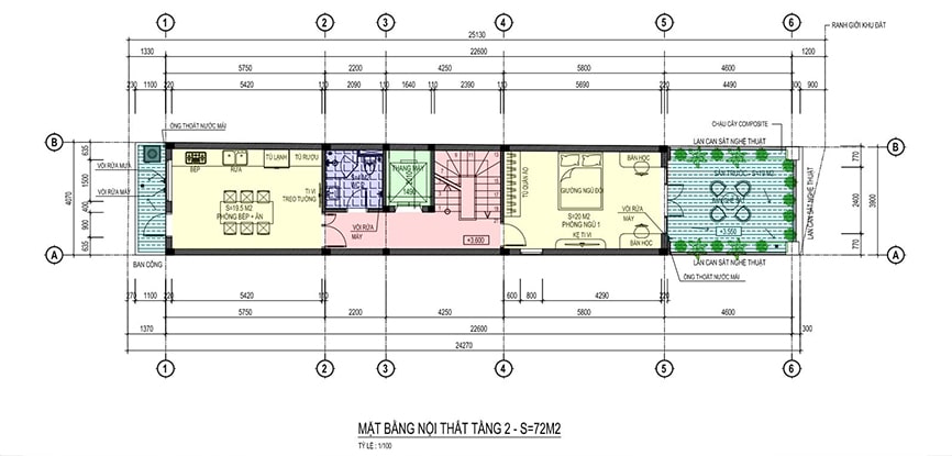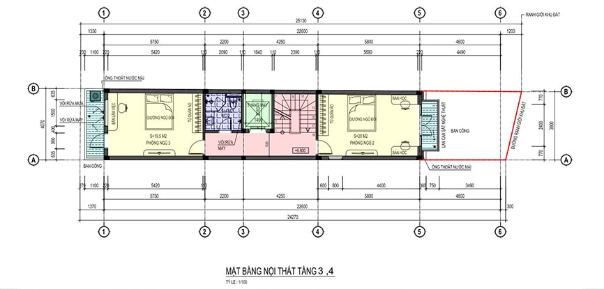 Mặt bằng công năng nhà ống 3 tầng hiện đại