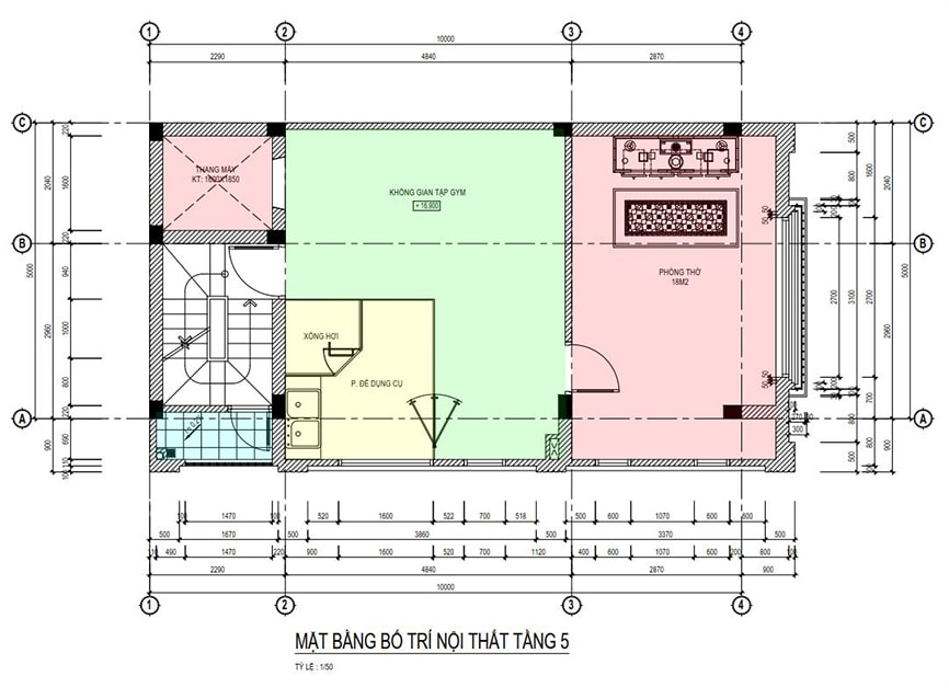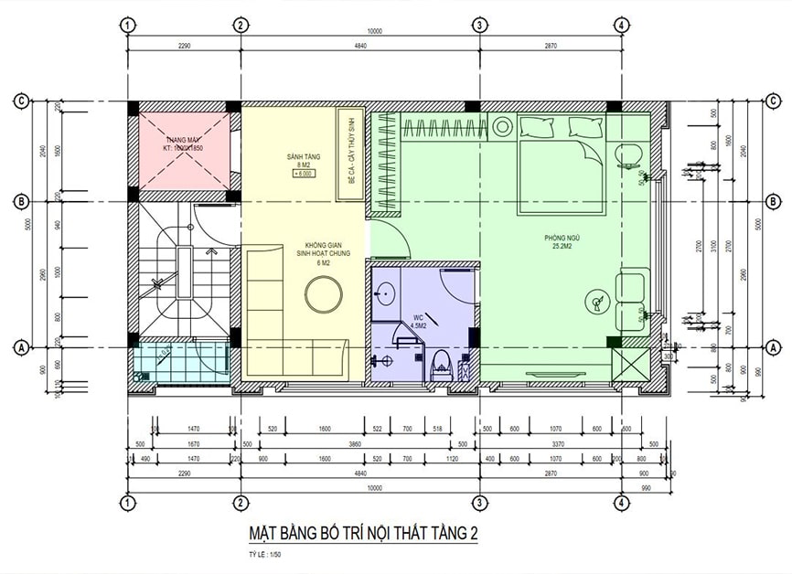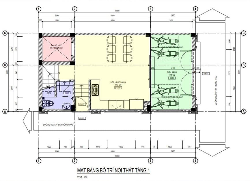 Mặt bằng công năng nhà ống 3 tầng hiện đại