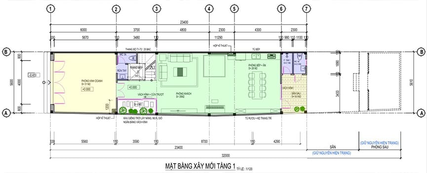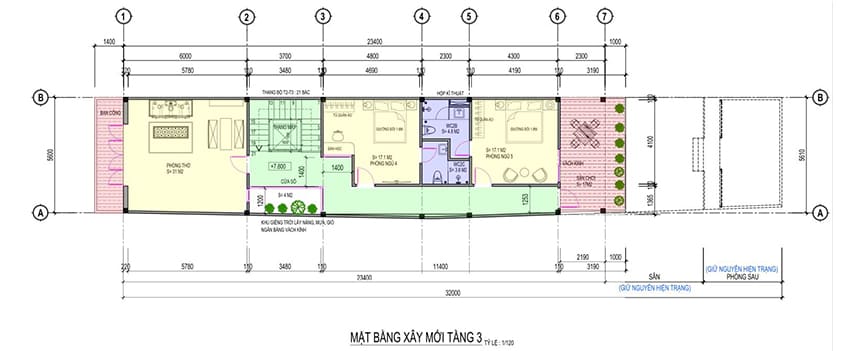 Mặt bằng công năng nhà ống 3 tầng hiện đại