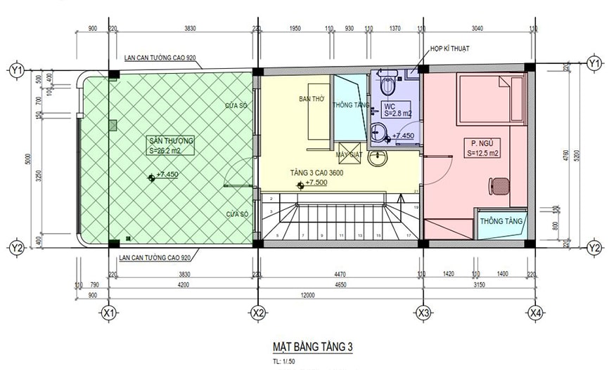 Mặt bằng công năng nhà ống 5 tầng hiện đại