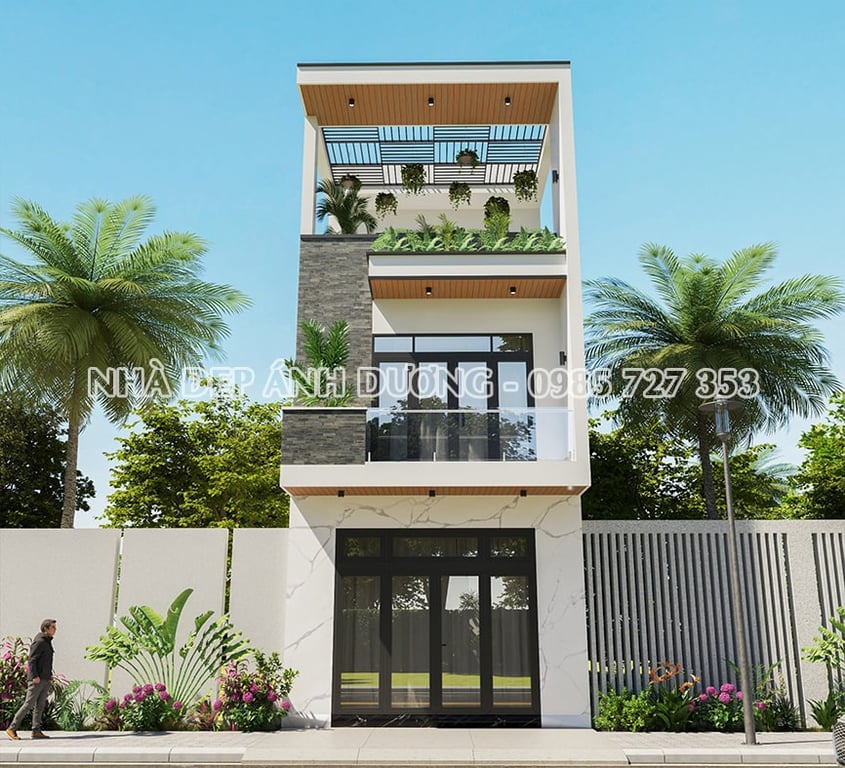 Nhà ống 4 tầng hiện đại của gia đình anh Khánh tại thành phố Ninh Bình không chỉ là một công trình xây dựng, mà còn là một biểu tượng của sự hài hòa giữa kiến trúc và thiên nhiên.
