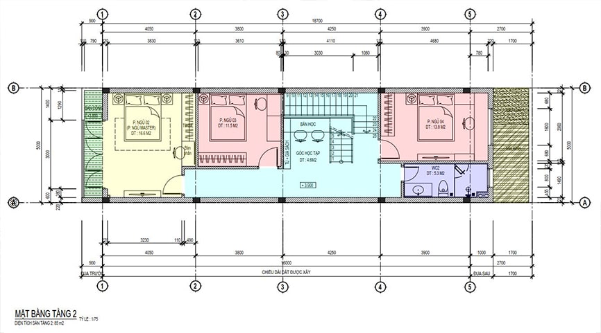 Mặt bằng công năng nhà ống 5 tầng hiện đại