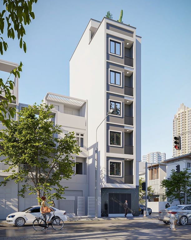Phối cảnh 3D nhà ống 3 tầng hiện đại