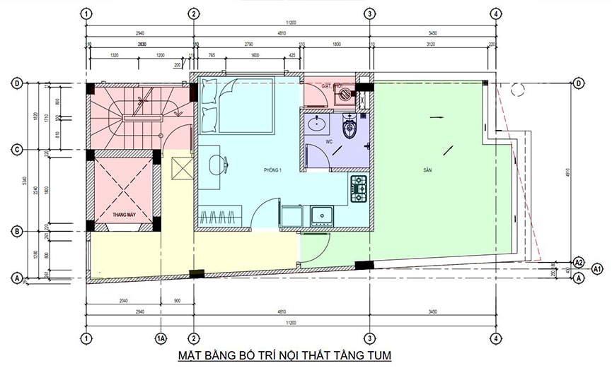 Mặt bằng công năng nhà ống 5 tầng hiện đại