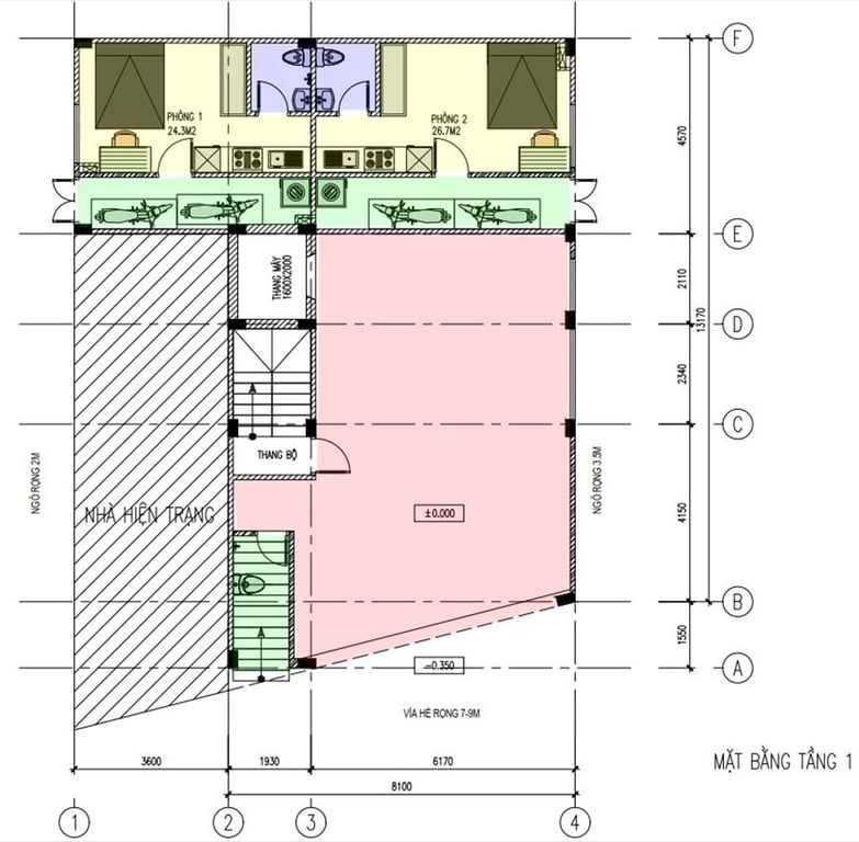 Mặt bằng công năng nhà ống 3 tầng hiện đại