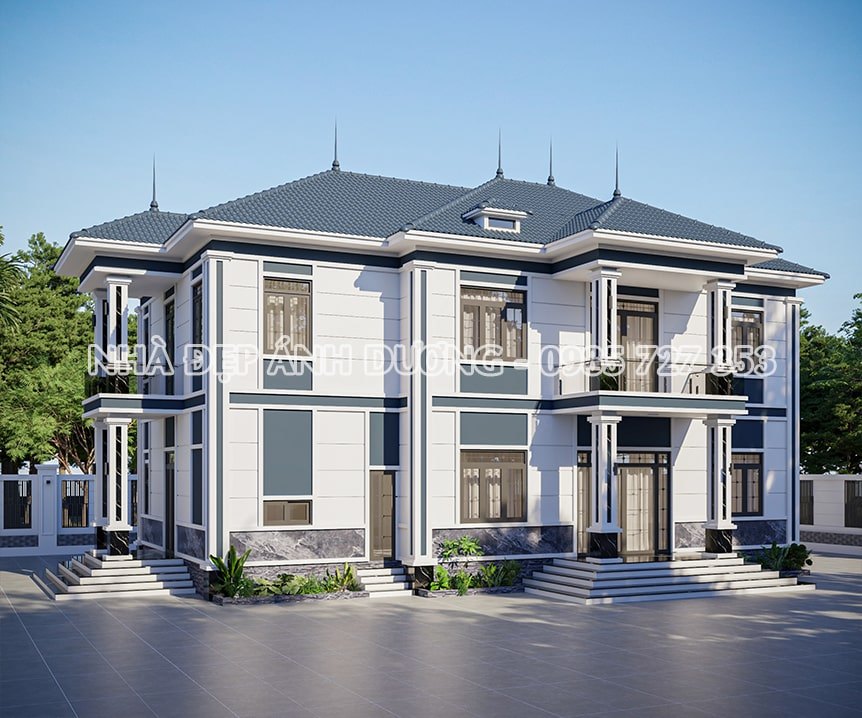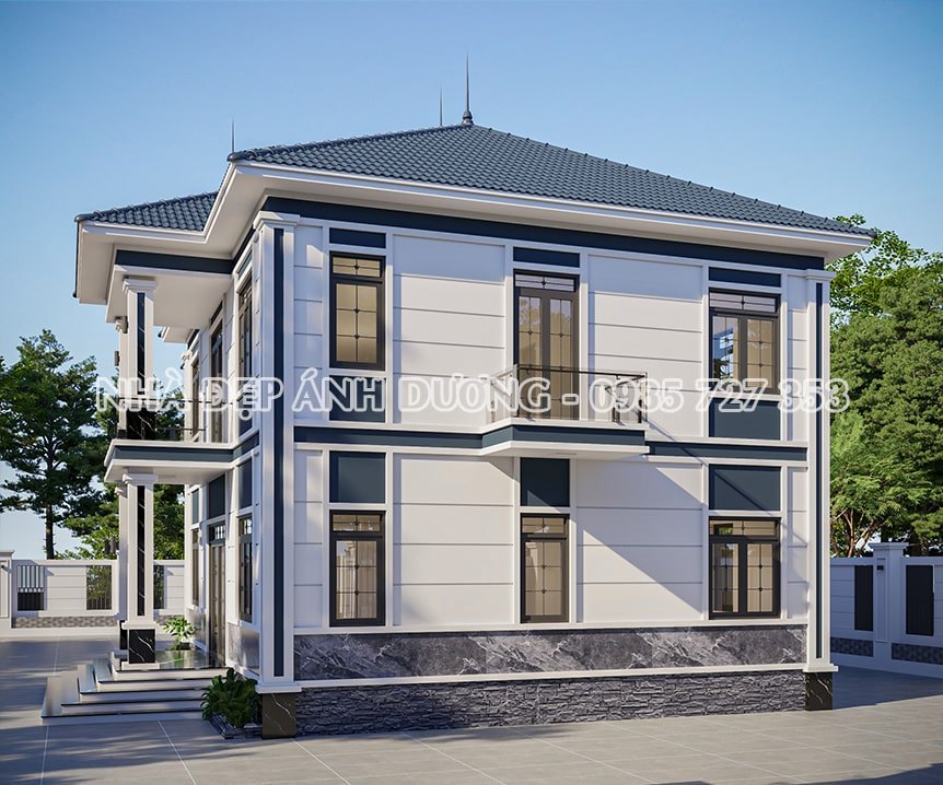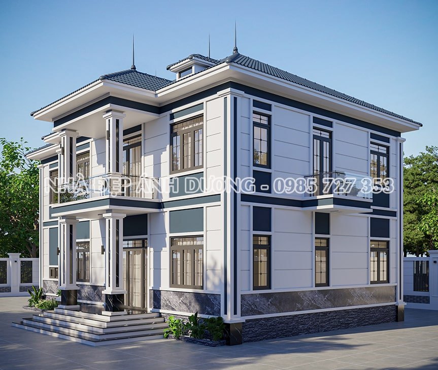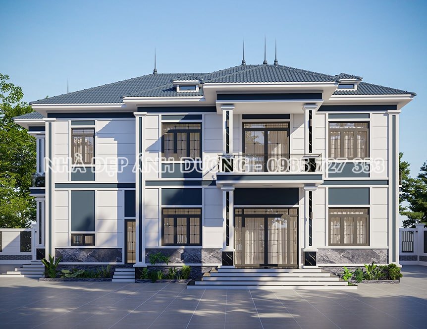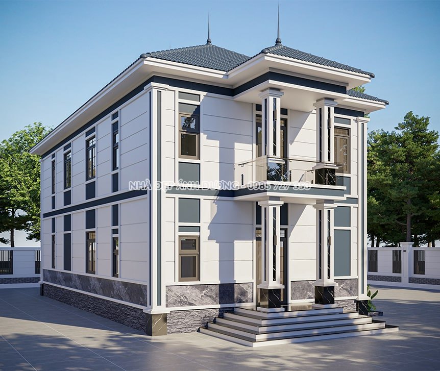Phối cảnh ngoại thất biệt thự mái Nhật 2 tầng