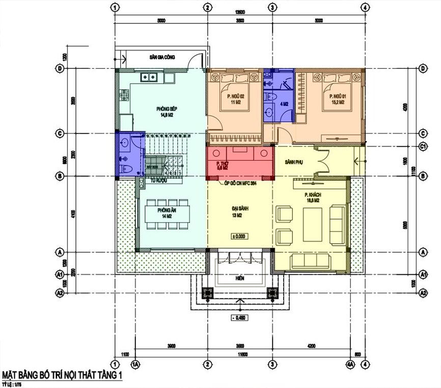 Mặt bằng công năng nhà ống 3 tầng hiện đại