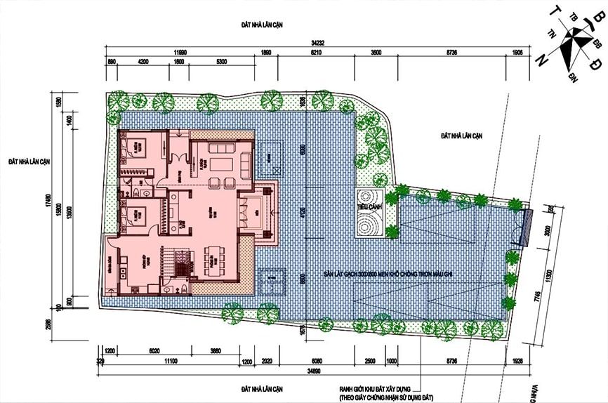 Tường rào bao quanh bảo vệ công trình, đồng thời tạo nên sự riêng tư và an ninh cho gia đình. Những đường nét đơn giản và tinh tế của tường rào tôn lên vẻ đẹp sang trọng và hiện đại của ngôi nhà.