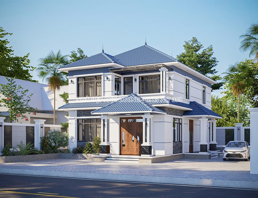 Tường rào bao quanh bảo vệ công trình, đồng thời tạo nên sự riêng tư và an ninh cho gia đình. Những đường nét đơn giản và tinh tế của tường rào tôn lên vẻ đẹp sang trọng và hiện đại của ngôi nhà.