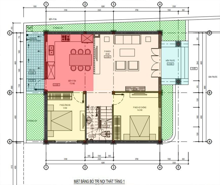 Mặt bằng công năng nhà ống 3 tầng hiện đại