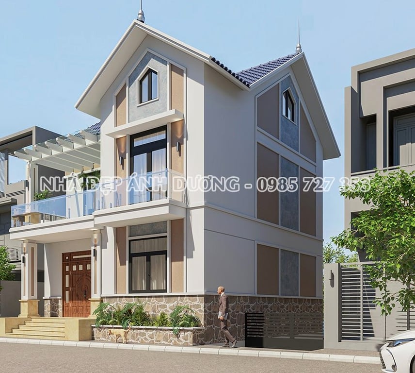 Phối cảnh 3D nhà ống 3 tầng hiện đại
