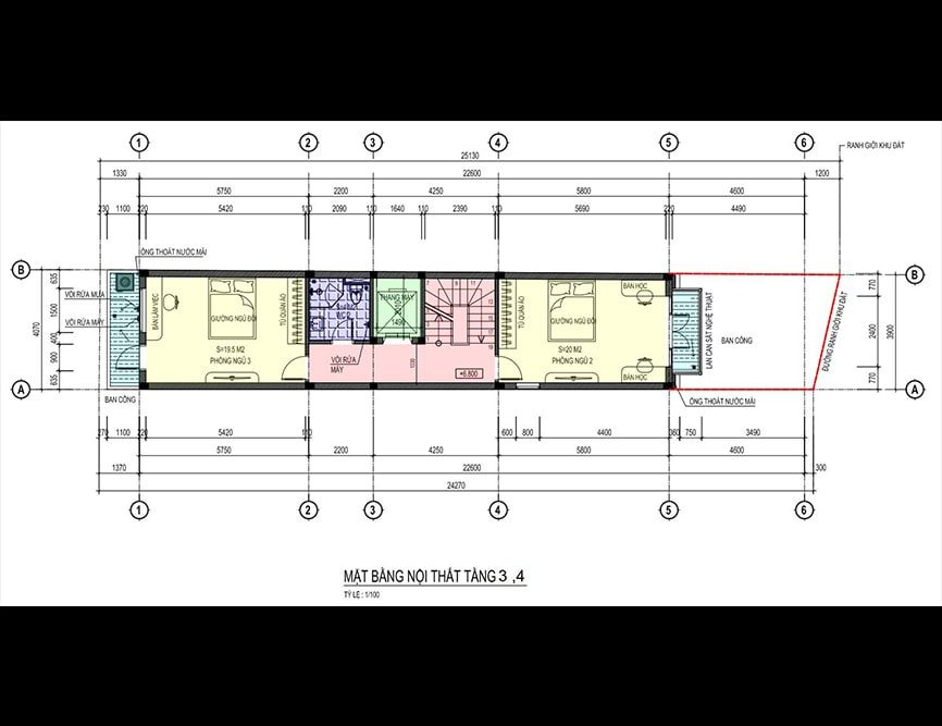 Mặt bằng công năng nhà ống 3 tầng hiện đại