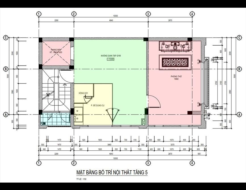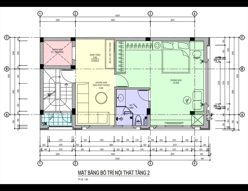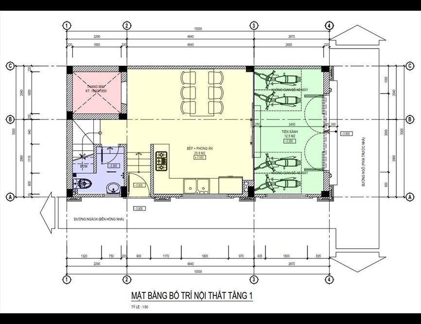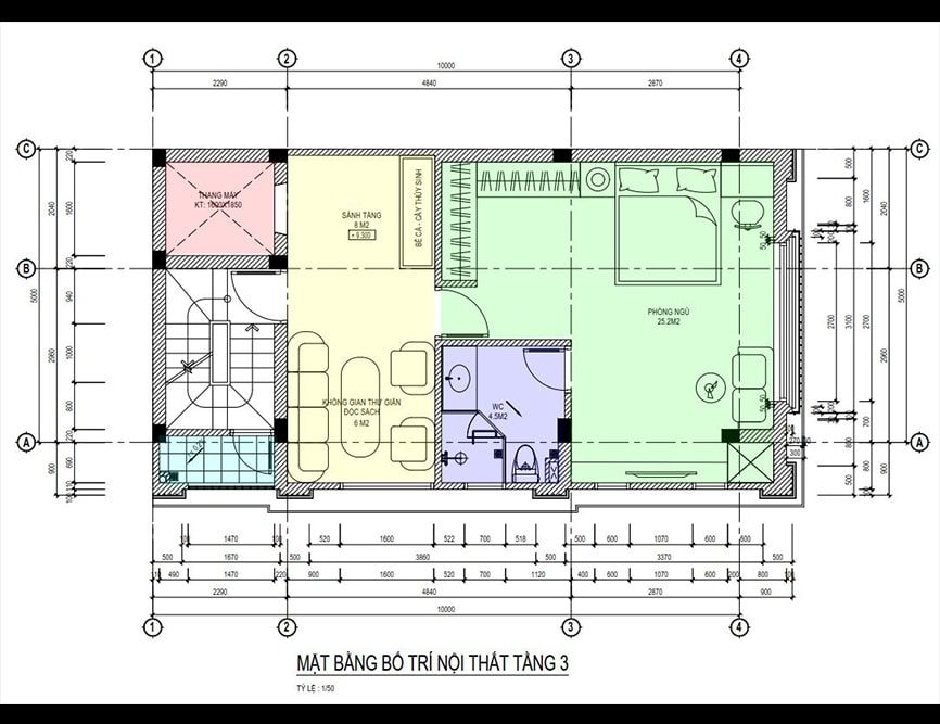 Mặt bằng công năng nhà ống 3 tầng hiện đại