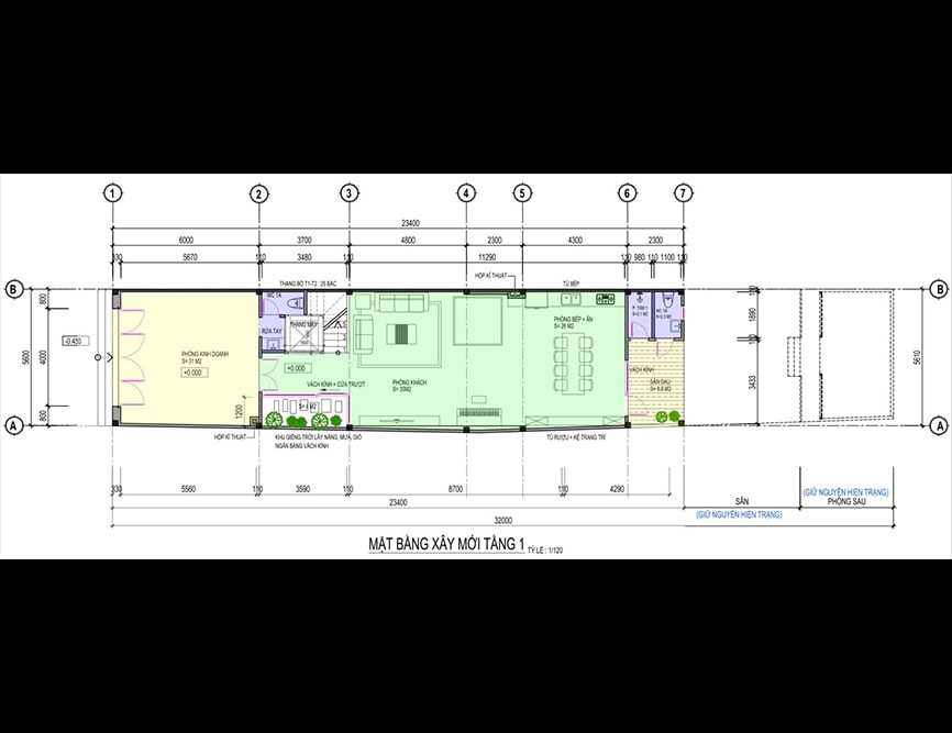 Mặt bằng công năng nhà ống 3 tầng hiện đại