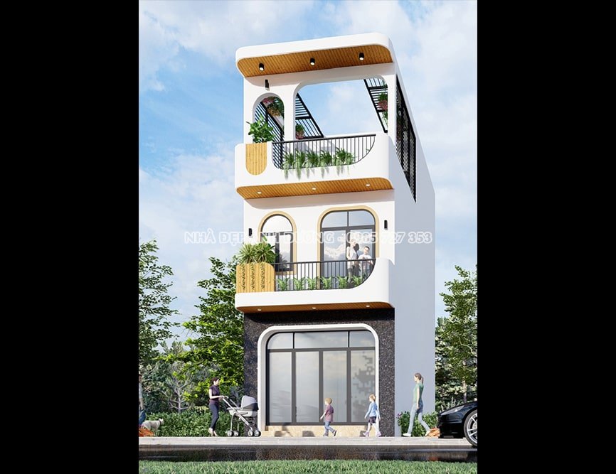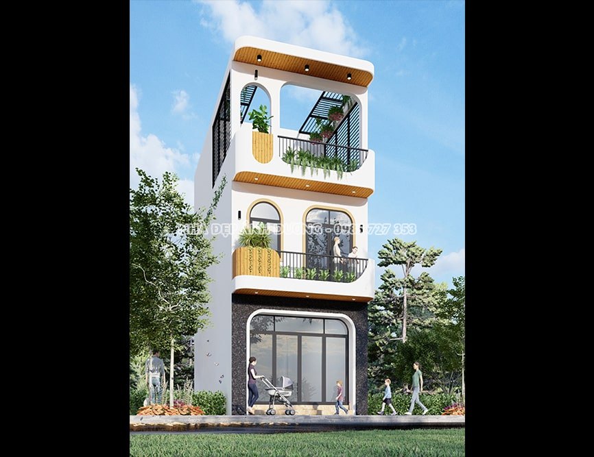 Phối cảnh 3D nhà ống 3 tầng hiện đại
