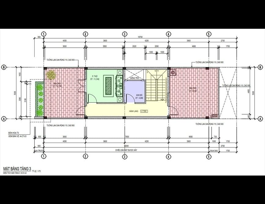 Mặt bằng công năng nhà ống 5 tầng hiện đại