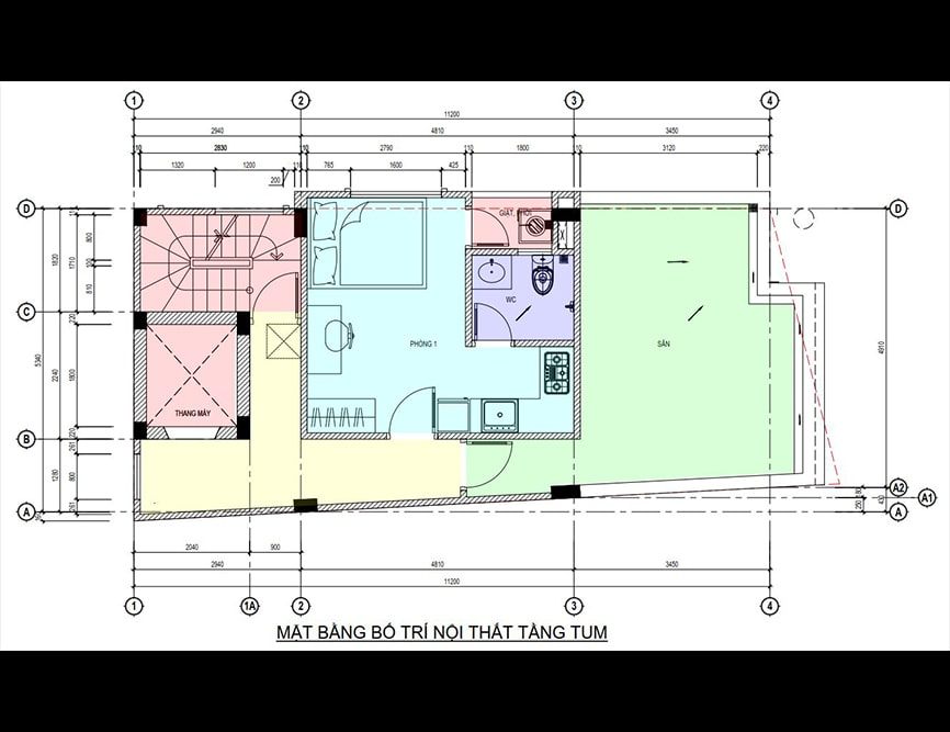 Mặt bằng công năng nhà ống 5 tầng hiện đại