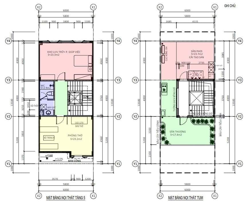 Mặt bằng công năng nhà ống 5 tầng hiện đại